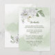 as flores brancas românticas e as folhas verdes apresentam os detalhes do cartão.
