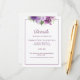 Grande buquê de flores de cor de água púrpura com texto formal elegante. Bombeiro, bombeiro inspirou um convite de casamento com um belo estilo clássico.