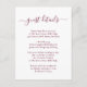 Forneça aos seus convidados detalhes importantes com este cartão de inclusão de casamento burgundy elegante com uma fonte de letra moderna. Itens correspondentes disponíveis.