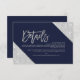 Tipografia prateada em blocos coloridos de cor azul-prata marinho personalizáveis e faixas geométricas falsas de prata, direções e detalhes do casamento, perfeito para o casamento elegante,