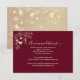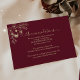 Inserção elegante de acomodação para casamento em borgonha com ilustração floral vintage dourada e destaques em estilo caligráfico. Compartilhe informações do bloco de quartos do hotel, números de contato e o site do seu casamento. Uma combinação perfeita para conjuntos de casamento de outono ou inverno. Precisa de ajuda para personalizar? Entre em contato em bpkolman@gmail.com.