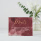 Este design de ouro e de cor d'água burgundy é perfeito para um casamento moderno e sangrento. O design apresenta um fundo de aquarela pintado emparelhado com sotaques dourados pequenos.