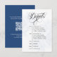 Elegant and timeless, this dusty blue wedding details card features romantic calligraphy script paired with a soft botanical floral background for a refined, modern look. The clean layout includes a structured timeline for ceremony, reception, and evening events, helping guests easily follow your special day.
