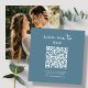 Faça seu processo de RSVP de casamento sem problemas, com nossa placa de código de QR RSVP. Esta placa compacta personalizável apresenta uma moderna inscrição branca com um fundo azul elegante e empoeirado. A frente inclui uma área de texto personalizável e um espaço para gerar um código de QR exclusivo para os hóspedes poderem facilmente RSVP através dos seus smartphones. Vá para a opção "personalizar", adicione o URL do seu site de casamento à área fornecida, e um código QR será gerado no design apenas para você. No verso, adicione um toque pessoal com uma foto. Torne o seu dia especial ainda mais memorável com este cartão chic e funcional de cerimônias de casamento.