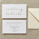 Um grande cartão de inclusão de convite de casamento dá aos seus convidados uma visão geral do seu grande dia com texto com efeito dourado. Preencha o cartão com todos os detalhes que seus amigos e familiares precisam saber: data, local, horário e quaisquer outros requisitos ou restrições e adicione-o ao seu convite de casamento. Esses cartões certamente farão a diferença e tornarão as coisas muito mais fáceis no planejamento do seu grande dia.