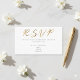 Este cartão de resposta RSVP contemporâneo apresenta um fundo branco crocante e a palavra "RSVP" em uma fonte sofisticada com efeito dourado, oferecendo um design fresco e simples para eventos de casamento modernos. O formato claro e fácil de ler permite que você inclua detalhes importantes da resposta, como local, informações de contato e uma mensagem pessoal para convidados e familiares no verso. Todo o texto é totalmente personalizável, tornando fácil coordenar com o estilo único do seu casamento, mantendo a comunicação com os convidados polida e direta.