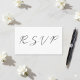 Este cartão de resposta de casamento minimalista apresenta uma elegante escrita cinza contra um fundo branco nítido para um visual moderno e atemporal. A frente apresenta o texto estiloso "RSVP", enquanto a parte de trás oferece amplo espaço para personalizar com nomes, informações de contato, local e detalhes do evento. Uma adição elegante e versátil para elevar qualquer conjunto de convites de casamento.