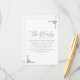This wedding enclosure card features a minimalist and elegant design with a clean white background, creating a spacious and sophisticated feel. The layout includes a stylized abstract cross symbol at the top, adding a touch of modern charm, while the phrase "the details" is elegantly written in flowing cursive script. Below, two blocks of text in a simple serif font provide information about accommodations and direct guests to a customizable website URL. The overall color palette consists of black on white for strong contrast and timeless appeal, making it perfect for formal occasions. The balanced composition and understated elegance convey a professional yet inviting tone, ideal for guiding guests to further event details.