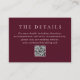Cartão De Informações Elegant Deep Burgundy QR Code Classic Wedding