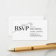 Este é o cartão RSVP moderno, lindo e sofisticado clássico (sofisticado), em letra cursiva preta, para o lembrete de resposta do convite do seu casamento, ou cartão de inclusão para celebração de festa. Você pode alterar as cores da fonte e adicionar os detalhes do seu casamento na fonte / letra correspondente. #TeeshaDerrick