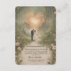 Step into a timeless fairytale with this romantic wedding invitation, featuring a mystical forest illuminated by a breathtaking heart-shaped canopy of glowing fairy lights. The magical woodland scene is adorned with delicate pink roses and ethereal greenery, creating a dreamlike medieval atmosphere of wonder and love. With its warm, golden light and soft watercolor aesthetic, this design is perfect for couples seeking a whimsical and enchanted nature-themed celebration. All text is fully personalizable, allowing you to easily edit names, dates, and venue details for your special day. This high-quality artwork is uniquely created with generativecontent.