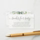 Cartões de recinto com pedido de livro neutro, bonitos, com aquarela eucalipto e folhas de ouro para chás de fraldas.