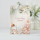Complete your shower stationery with this elegant First Bloom baby shower response card, designed in a soft palette of blush pink, cream, sage, and warm ivory. Featuring delicate peonies, a floral baby bottle, and a sweet pacifier accent, this RSVP card brings a gentle and romantic touch to your baby shower planning.