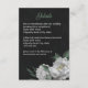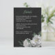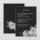 Cartão único de cerimônia de núpcias com flores brancas românticas e folhas verdes em fundo preto. PARA MAIS PRODUTOS CORRESPONDENTES, clique na coleção acima ou entre em contato comigo.