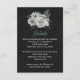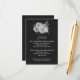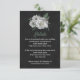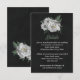 Cartão único de cerimônia de núpcias com flores brancas românticas e folhas verdes em fundo preto. PARA MAIS PRODUTOS CORRESPONDENTES, clique na coleção acima ou entre em contato comigo.