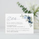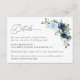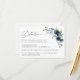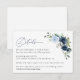 Complete o conjunto de papelaria de casamento com este cartão de detalhes elegante. O design apresenta flores e folhagens em tons de azul e navy em fundo branco.