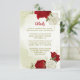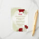 Belos detalhes do casamento: cartão com flores vermelhas e brancas e folhas verdes Os detalhes da brilha do ouro são simulados. PARA MAIS PRODUTOS CORRESPONDENTES, clique na coleção acima ou entre em contato comigo
