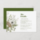Este cartão de cervejaria tem uma sensação estranha com cones de pinheiro e ramos de abeto que seriam perfeitos para um casamento de Natal ou para um casamento com uma área de floresta. As cores incluem o verde-oliva, o sábio e o castanho em branco claro. As palavras "os detalhes" são escritas em uma letra de título em negrito e são apresentadas no topo com os detalhes do casamento restantes diretamente abaixo. Todo o texto pode ser editado de acordo com as necessidades do seu evento. O fundo é uma cor verde coordenadora.