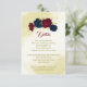 Belos detalhes da recepção de casamento Cartão de compartimento com marinho azul escuro e flores vermelhas e folhas de ouro. PARA MAIS PRODUTOS CORRESPONDENTES, clique na coleção acima ou entre em contato comigo