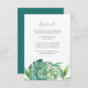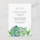 Este cartão de cercado tropical apresenta folhas de palma de aquarela. A palavra "Detalhes" é definida na tipografia do roteiro em verde esmeralda. A placa reverte para uma cor correspondente. Use os campos modelo para adicionar seu texto personalizado. Arte com aquarela original e design por Victoria Grigaliunas. Para ver o tema do casamento correspondente visite www.zazzle.com/dotellabelle