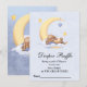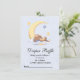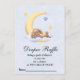 Chá de fraldas Raffle com cartão "Traga um pacote de fraldas em qualquer tamanho" com um belo coelho dormindo na lua.