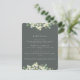 Um cartão de ensaio de casamento verde de cinzas escuras, para uso quando a cerimônia de ensaio e o janto estão em dois locais separados. Apresentando uma cobertura de morangos pintados manualmente e eucalipto. Todo texto é totalmente editável e os pontos dispersos na frente e atrás podem ser excluídos antes de fazer o pedido, se preferir. Por favor, veja esta Coleção na minha loja para a redação do alternativo, arranjos florais, cores diferentes e para a coordenação de itens.