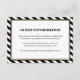 Estes elegantes, glam e sofisticados cartões de informação de convidados de casamento apresentam faixas diagonais em preto e branco, uma falsa borda de folha de ouro, e as informações de convidados de casamento em texto moderno. Observe que o ouro está impresso e não é uma folha de ouro real. Veja todos os itens de casamento correspondentes para este design clicando nas fotos da coleção abaixo: