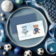 Um belo filme esportivo "Fralda Raffle", Teddy Bear, jogador de futebol, design.