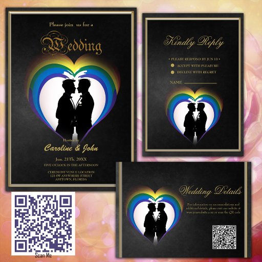 Gay elegante silhuetas. Traga sua história de amor para a vida com este design de casamento refinado. Esta design encantadora mostra gay silhuetas graciosas, oferecendo a você e a sua parceira a oportunidade de compartilhar a celebração do seu amor da forma mais bela.