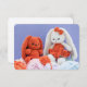 A small enclosure card featuring original photography of handmade crochet bunny toys.