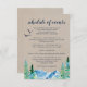 Esta agenda de casamento da montanha kraft de fim de semana é perfeita para um casamento de destino na montanha. O design apresenta uma paisagem de natureza selvagem pintada, azul e verde, com pinheiros de aquarela, pássaros e montanhas em um fundo falso de papel kraft claro. Por favor, observe que isto não está impresso em papel kraft real. É um gráfico de alta qualidade feito para parecer papel kraft.