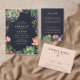 O cartão de informações do hotel de plantas suculentas botânicas escuras elegantes é uma maneira bonita e prática de fornecer a seus convidados todos os detalhes essenciais para a estadia. As suculentas são pintadas à mão em um estilo rico de aquarela gouache, criando uma estética sofisticada e elegante. O fundo preto adiciona ao sentimento dramático e luxuoso do convite. O cartão inclui todas as informações necessárias, incluindo o nome do hotel, endereço, número de telefone, site e informações do bloco de quartos. O cartão é projetado para ser informativo e visualmente atraente, tornando-o um acréscimo bem-vindo ao conjunto de papelaria do seu casamento.