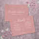 Um elegante cartão de informações de detalhes de casamento personalizado com seus detalhes especiais em tipografia de na moda e seus nomes e data de casamento no verso em um fundo rosa empoeirado. Você pode personalizar o fundo para a sua cor favorita do tema do casamento. Projetado por Thisnotme©