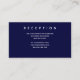 Um cartão de informações de recepção feito em tipografia azul escura e branca com informações suficientes para ganhar o dia. Este item faz parte de uma coleção de casamento que inclui sua escolha de convite, um cartão RSVP, Salvar a Data e muito mais. Coloque suas informações neste cartão, adicione-as ao seu carrinho, e tenha um casamento maravilhoso.