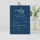 Esta é a bela placa de gabinete de RSVP (Resposta) Moderna, Caligráfica, Elegante, em Marinho Azul, onde você pode editar, mudar a cor e formatá-la de acordo com a sua exigência de design, com opções de refeição, assentos reservados, atendimento de números e opção de solicitação de música. #TeeshaDerrick