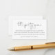 Precisa incluir mais detalhes no seu convite? Esta placa de gabinete personalizável tem dois campos de texto personalizados para compartilhar informações importantes com seus convidados. O moderno design minimalista apresenta um guião manuscrito preto suave e uma escrita clássica num fundo branco nítido. Personalize o texto e personalize para corresponder às cores ou ao tema do evento. Este cartão de cerimônia de Panty Game aos hóspedes do chá de panela que tragam um par de novas calcinhas do tamanho da noiva que reflita a personalidade do doador.