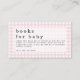 Cartão De Informações Livros Brancos Rosa de Gingham para Bebê