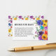 Projetada para coordenar com nossa 'Bright & Bold Floral Chá de fraldas' Suite - esta placa fofa apresenta o texto 'Livros para Bebê', uma mensagem personalizável e decorada com vibrantes coloridas aquáticas pintadas manualmente flores e verde botânico. Um jogo de diversão popular para novos pais pedirem a familiares e amigos.