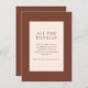 This elegant wedding enclosure card features a sophisticated design with a rich brown and cream color palette, exuding an air of timeless elegance. The clean typography adds a modern touch to the classic layout, making it perfect for conveying essential details in a refined manner. Ideal for couples seeking a polished look for their special day, this card ensures guests have all the information they need while maintaining a cohesive aesthetic with your wedding theme. Its simple yet stylish presentation allows for seamless integration into any formal or semi-formal celebration.