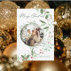 "Compartilhe alegria de férias com elegância usando este Cartão de Férias de Natal Holly Botanical Greenery. Apresentando uma sagrada e elegante botânica e duas fotos carinhosas, este cartão premium garante saudações sazonais alegres."