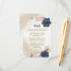 Belos detalhes do casamento: cartões de cercado com marinho e flores cor-de-rosa e folhas verdes. São simulados os detalhes do brilho dourado. PARA MAIS PRODUTOS CORRESPONDENTES, clique na coleção acima ou entre em contato comigo