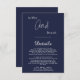 Este elegante cartão azul de cerimônias de casamento é perfeito para um casamento moderno. o simples design apresenta uma caligrafia branca elegante num fundo azul marinho.