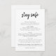 As medidas simples de segurança de casamento por na moda incluem um cartão em estilo moderno e minimalista de design com uma elegante tipografia natural em preto e branco clássico, com uma letra informal no estilo de escrita manual. O texto pode ser facilmente personalizado para um único design de tipo a manter os hóspedes em segurança durante o dia especial, incluindo diretrizes de distanciamento social, máscaras de rosto, segurança local e uma mensagem de segurança covid-19 coronavírus personalizada para os seus hóspedes.