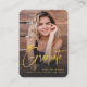 Modern signature script mini size Graduation Announcement and invitation with photos in black and gold, simple and unique. Custom it with your own photos and grad party information.