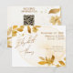 Minimal Autumn Golden Botanical Script Wedding Enclosure Card. This minimal wedding enclosure card matching wedding invitations with the same design features flowing script names paired with soft autumn gold botanical accents and a light parchment-style wash. The design balances warmth and simplicity, allowing the couple’s names to feel personal while keeping the overall layout clean and modern. The reverse side includes a matching layout with a QR code, website link, and RSVP details for easy guest responses. Subtle gold tones and airy spacing create a calm, refined look that works beautifully for elegant, relaxed, or contemporary weddings.
