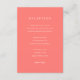 Cartão De Informações Modern Bold Vibrant Coral Simple Wedding