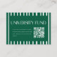 Modern Green University Fund QR Code Graduation Enclosure Card. A minimalistic and bold, striped green university fund enclosure card, designed with large, bold typography. Add your custom message, and donation website in a QR code.