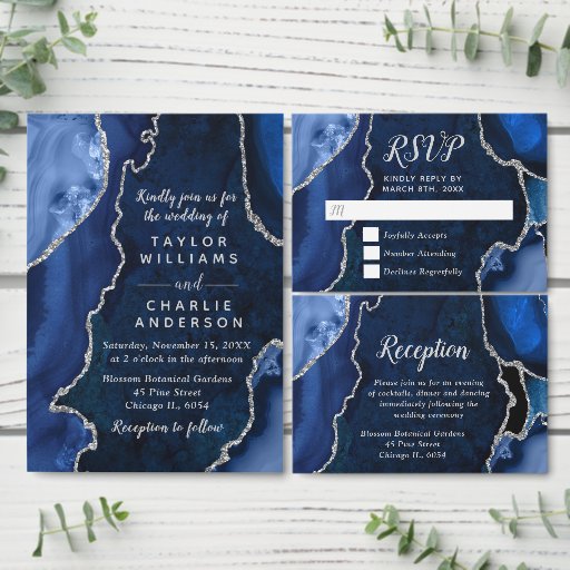 Navy Blue and Silver Agate Marble WeddingCriado por Kirsty W