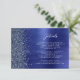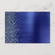 This elegant modern wedding details enclosure card features a navy blue brushed metal background image sprinkled with faux diamond glitter. Customize the white text, with the title "Details" in stylish handwriting script and the remaining text in sans serif font. The reverse side features a matching navy blue brushed metal and faux glitter design.