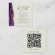 A borda esquerda deste elegante e moderno cartão de cerimônia de núpcias apresenta uma borda agitada com cor d'água roxa, aparada com falso brilho dourado. O título aparece no script de escrita manual de cinzas de carvão, com texto personalizável abaixo na fonte de impressão em matriz de marfim. Carregue o código QR do seu site de casamento para substituir a imagem de amostra no verso, enquadrado pelas palavras "digitalize-me para RSVP".